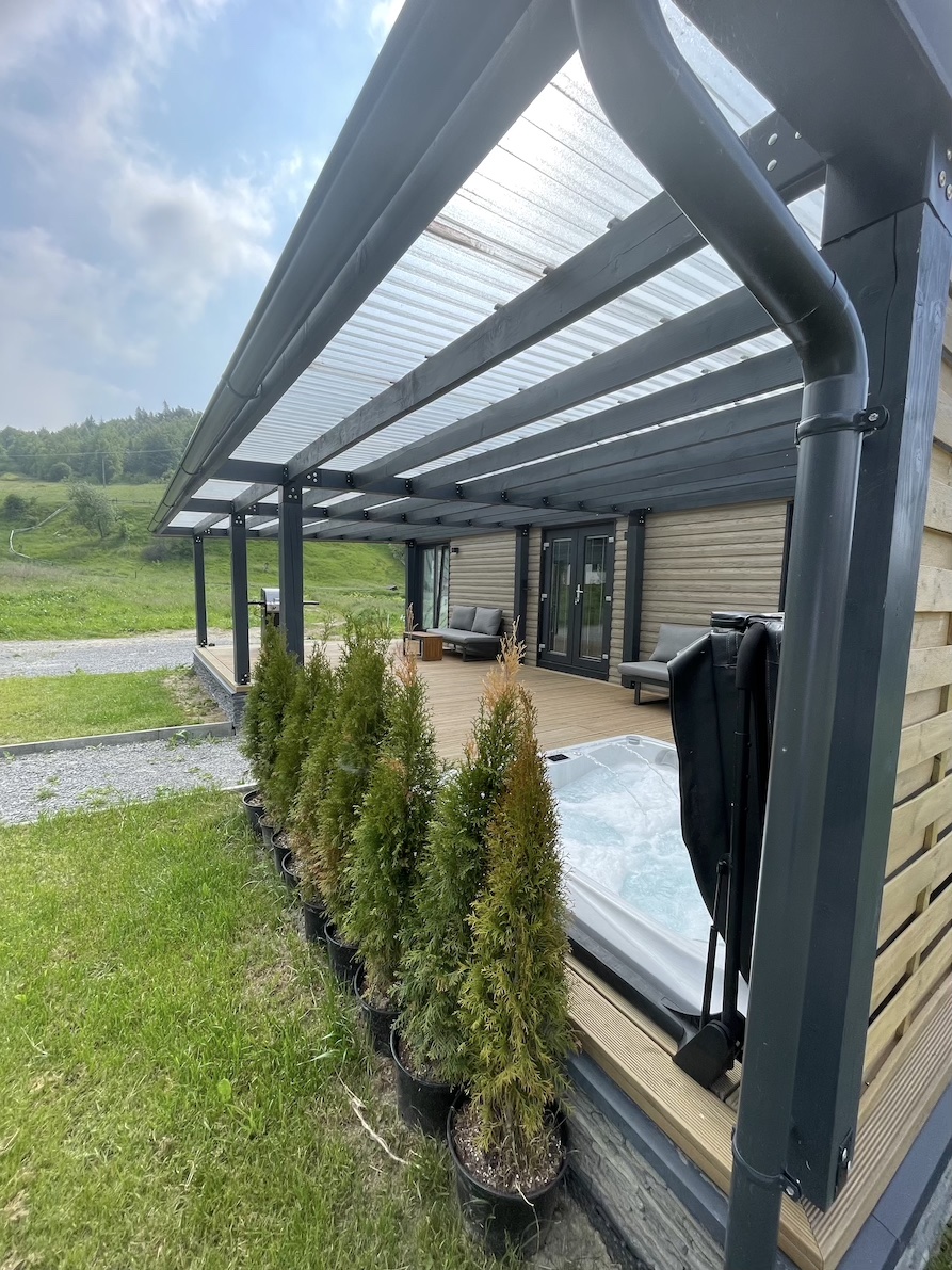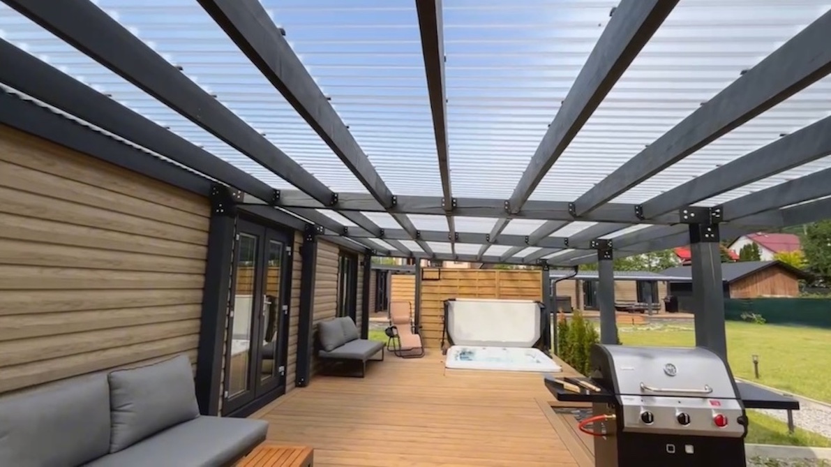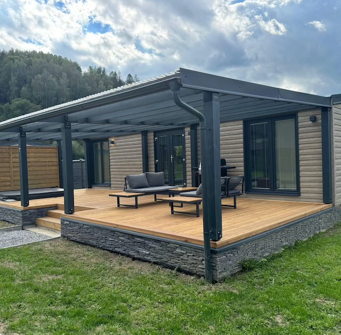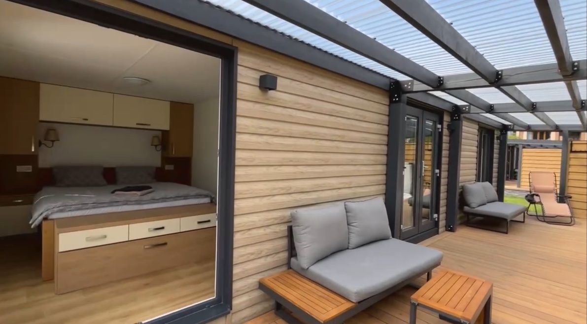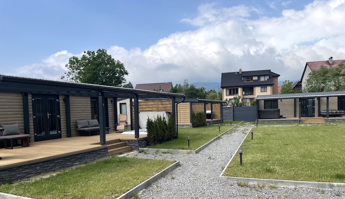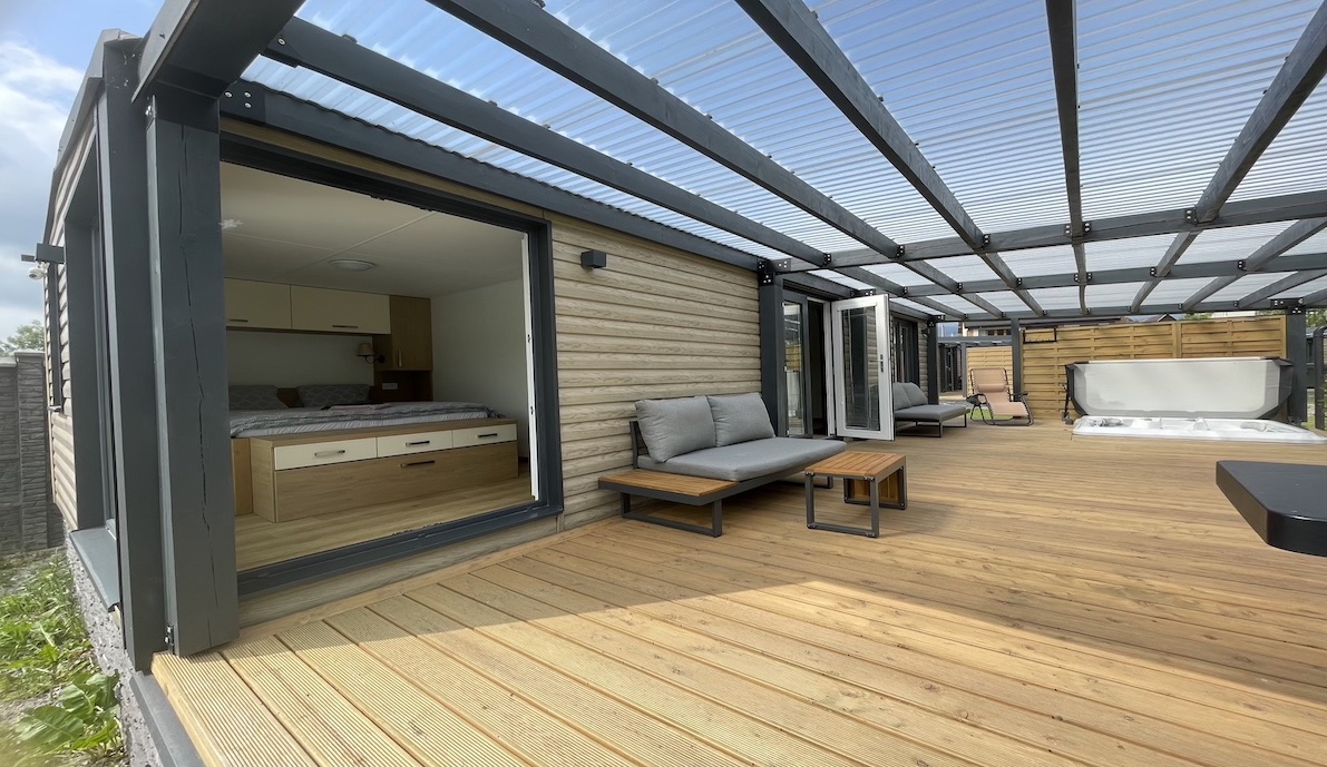Three ORIGINAL mobile homes with two bedrooms, a large terrace, hot tub, and grill.
