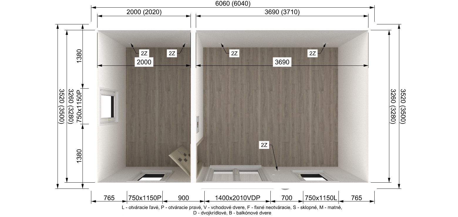 • Plastic 5-chamber windows with double glazing (exterior anthracite / interior white).