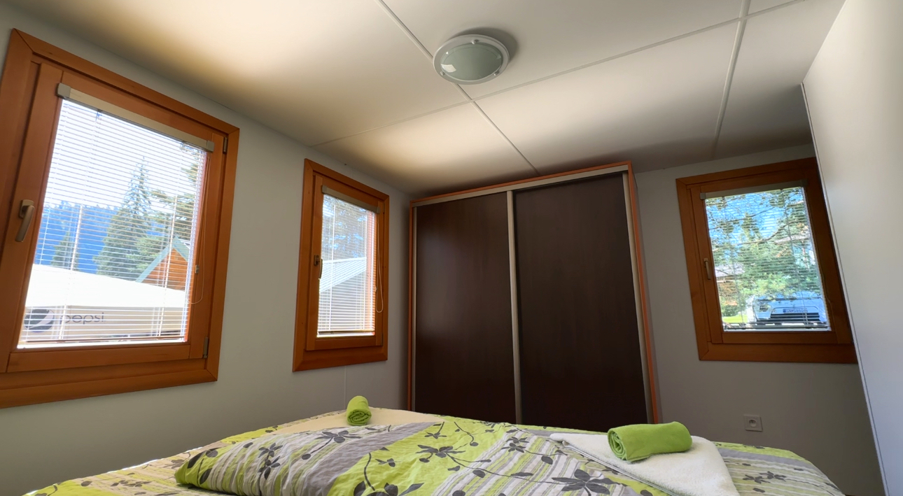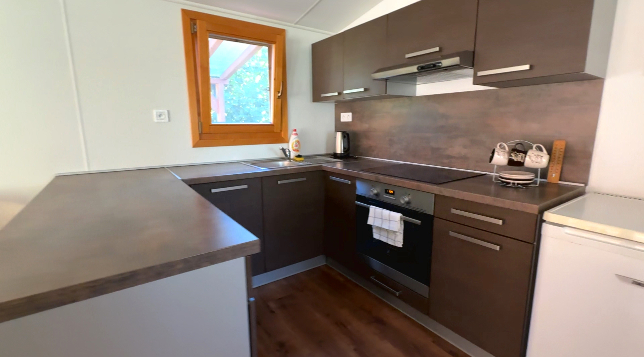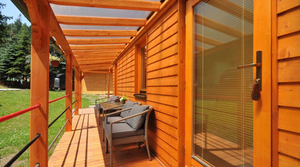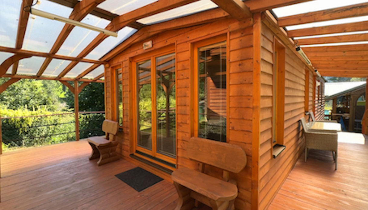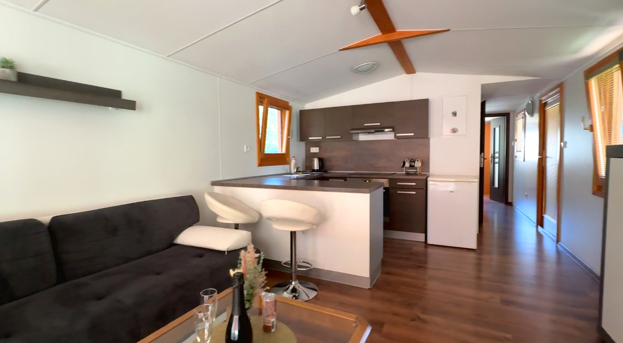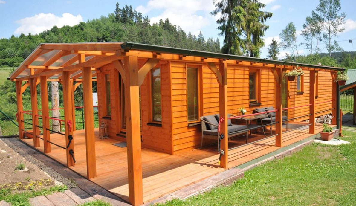 WOOD mobile home with two bedrooms, a terrace, and outdoor wellness.