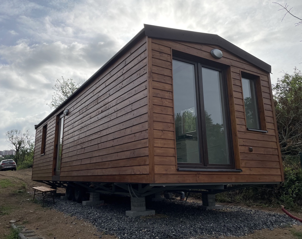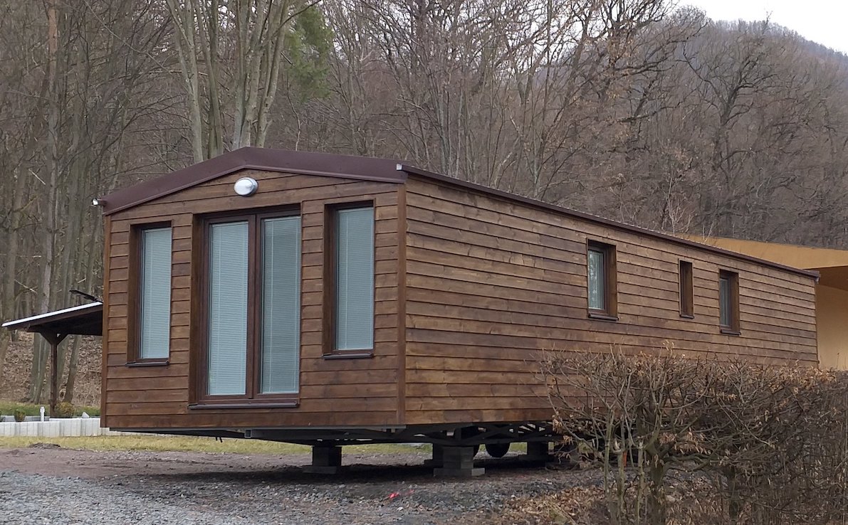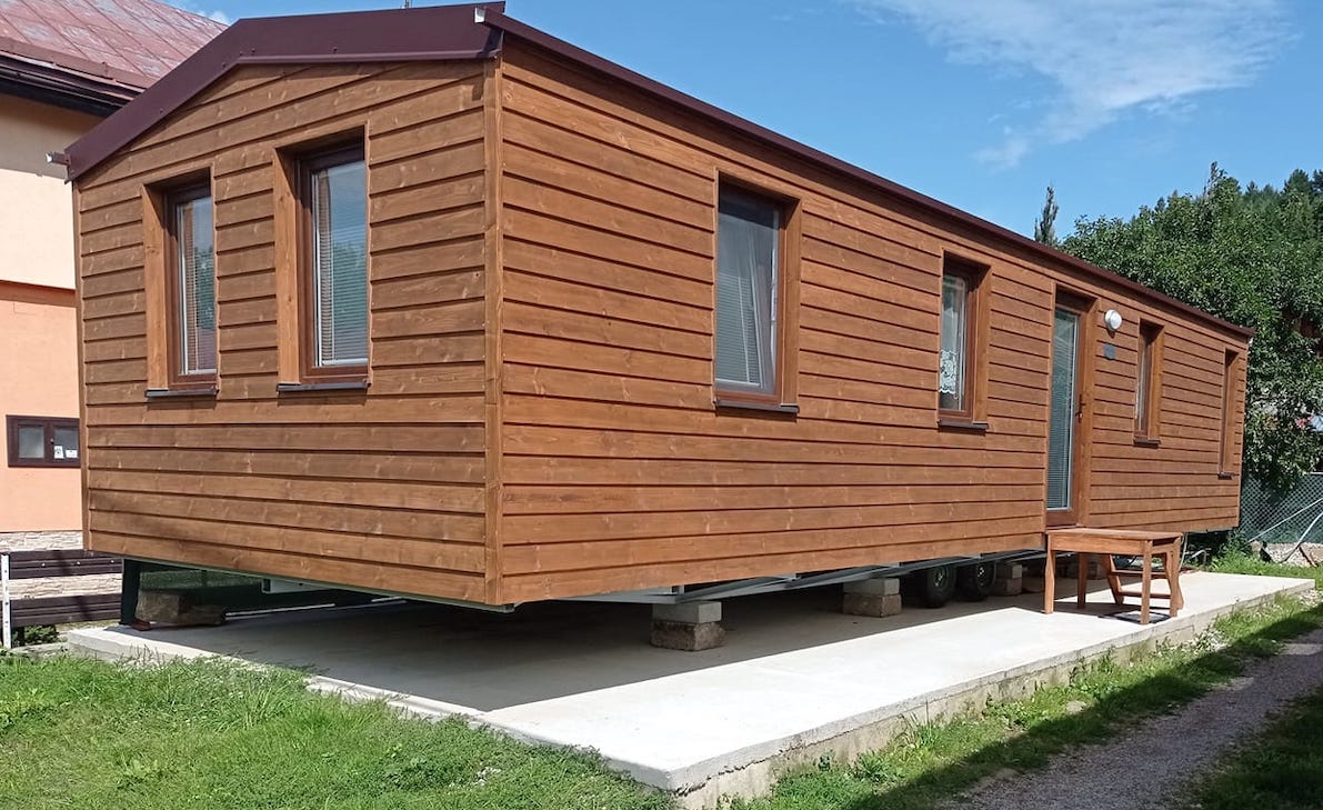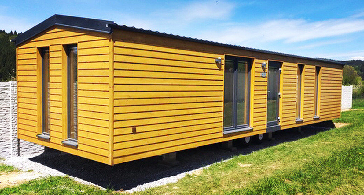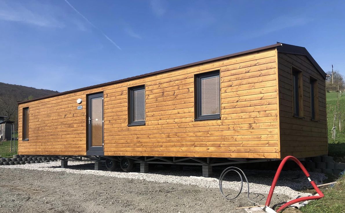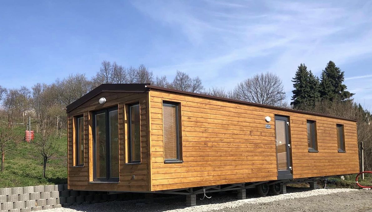 • Slovak mobile home with wooden cladding and an elegant look