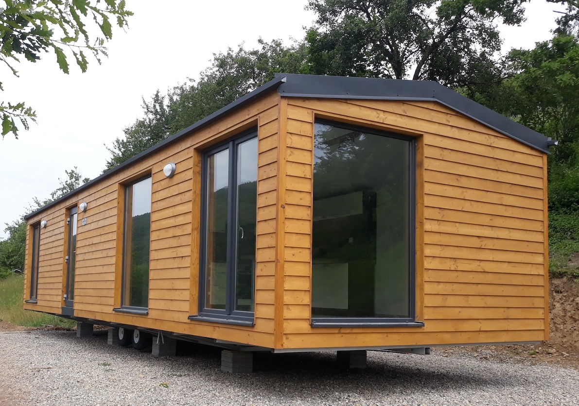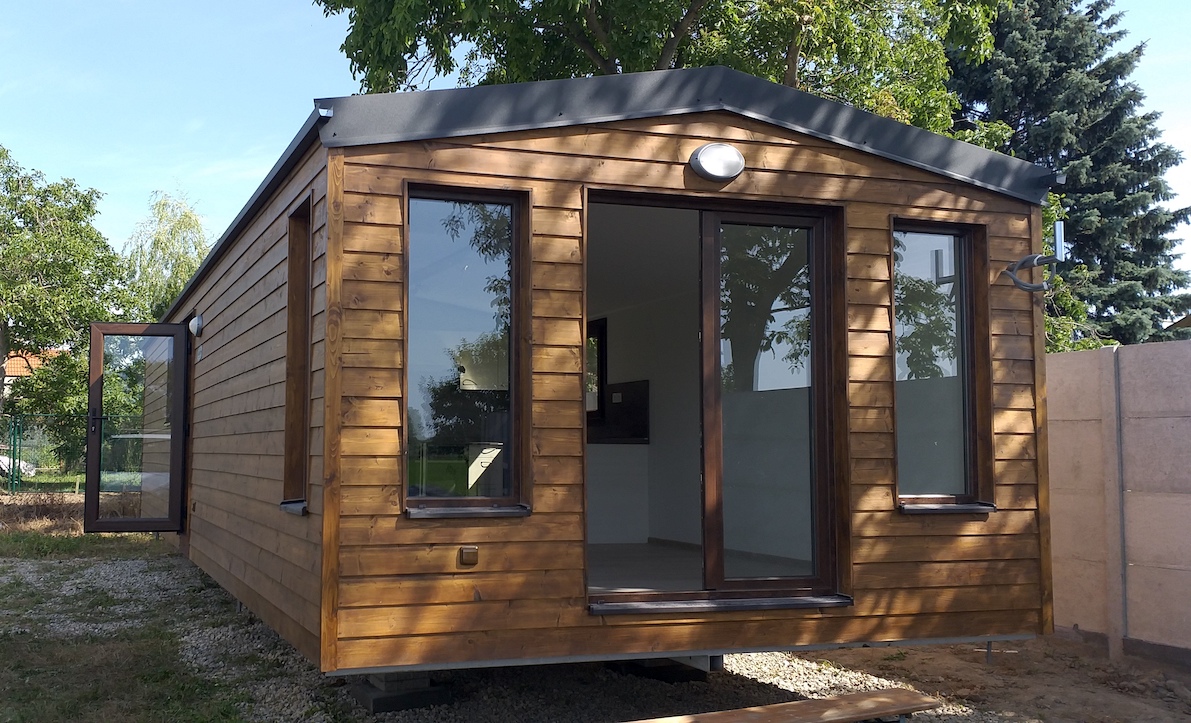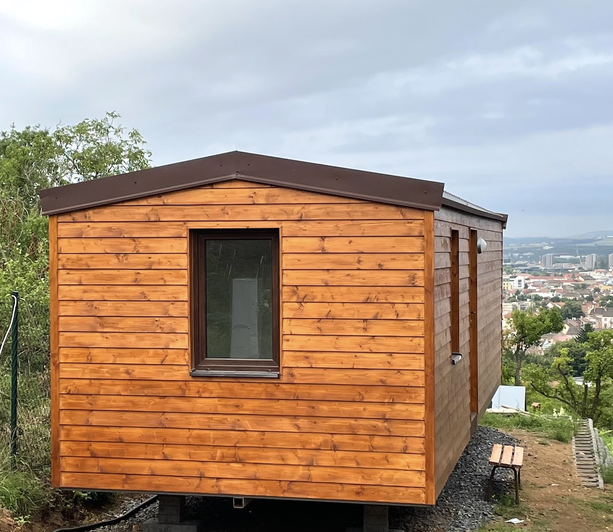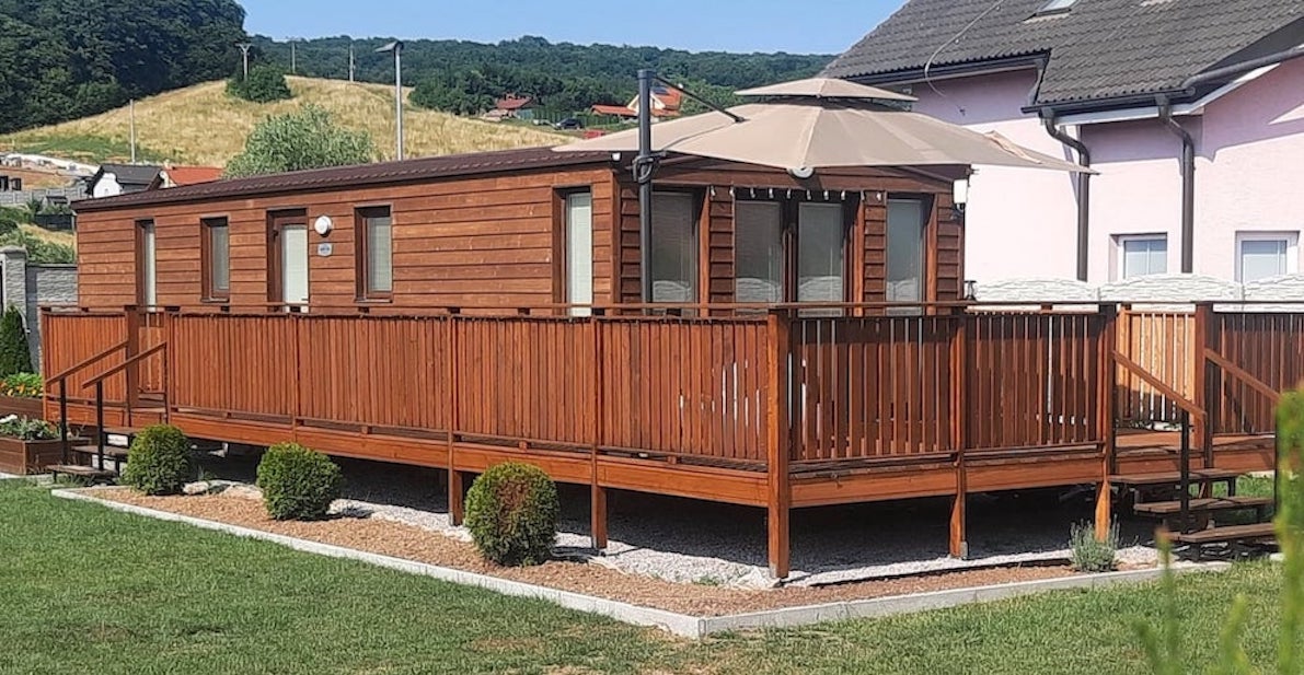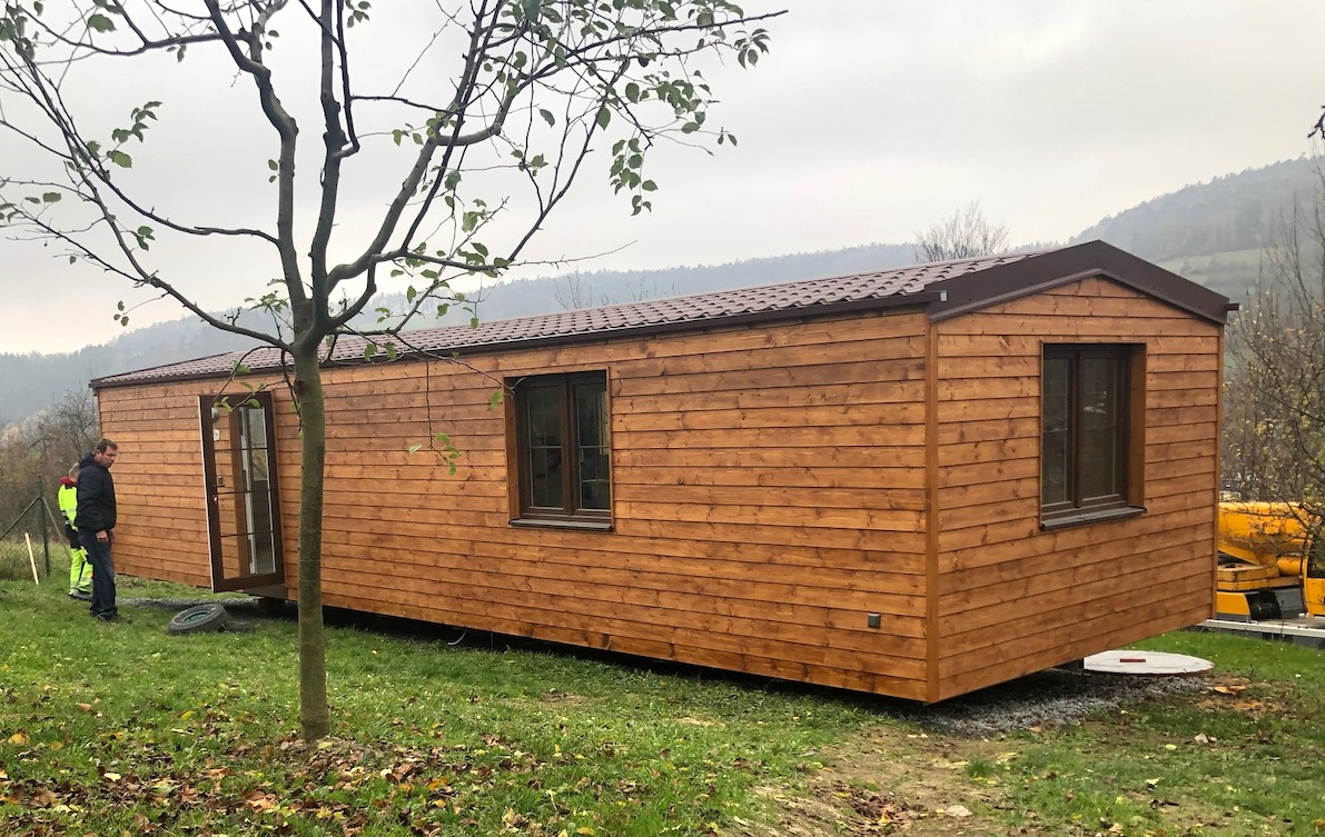 • Slovak mobile home with wooden cladding and an elegant look