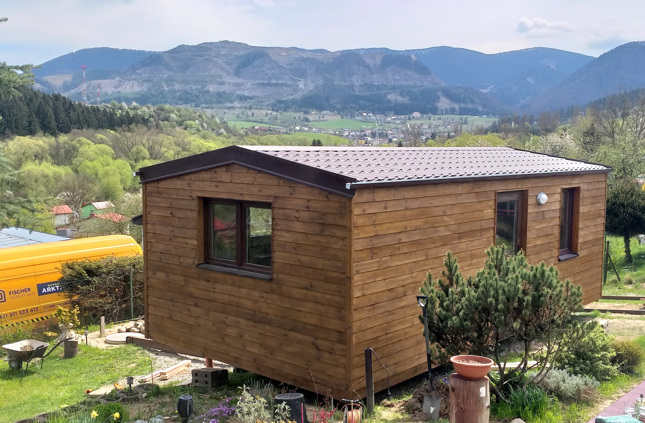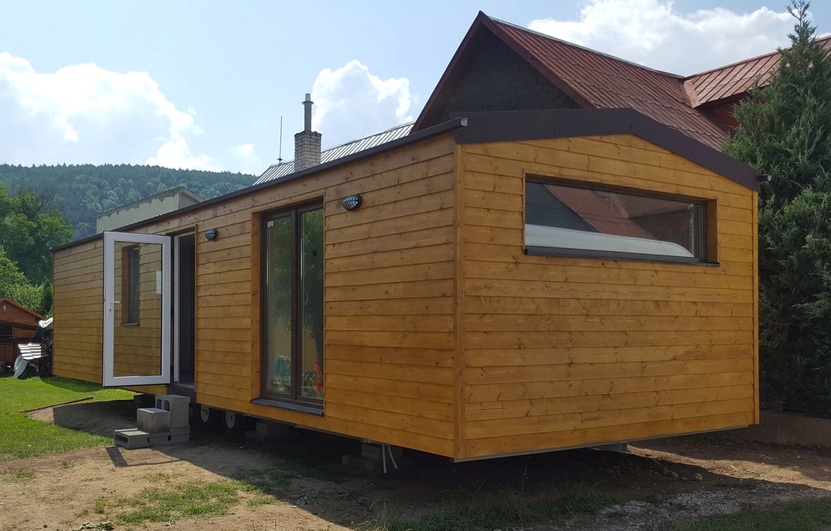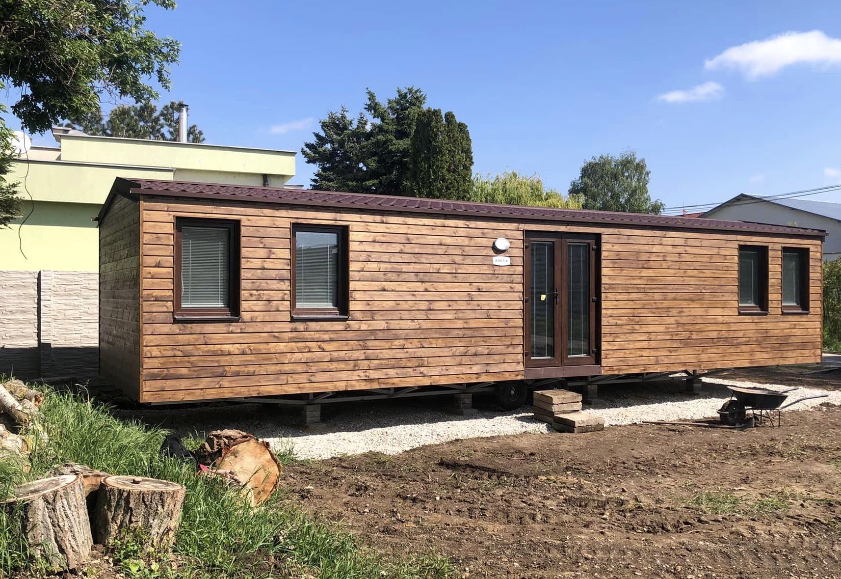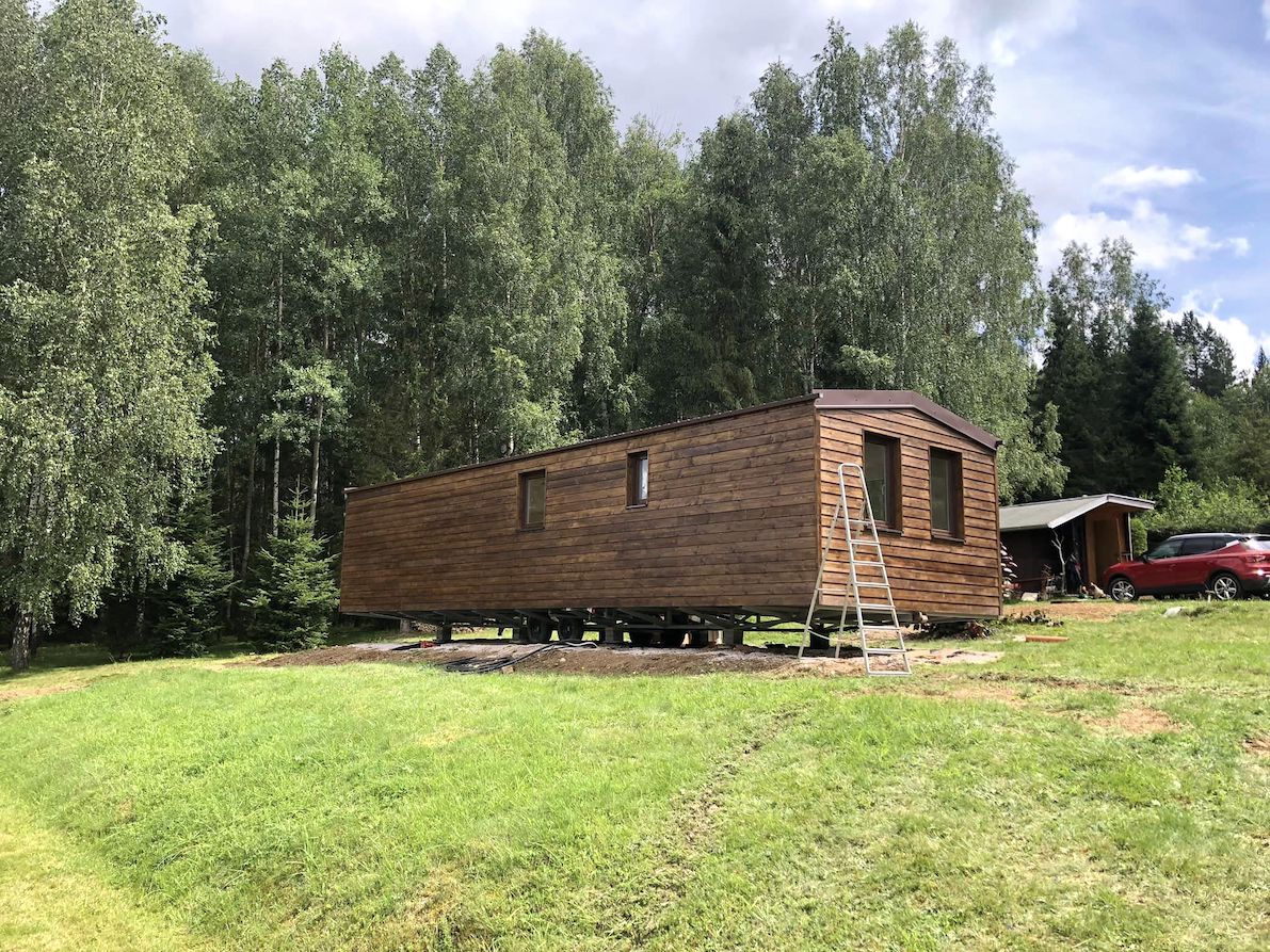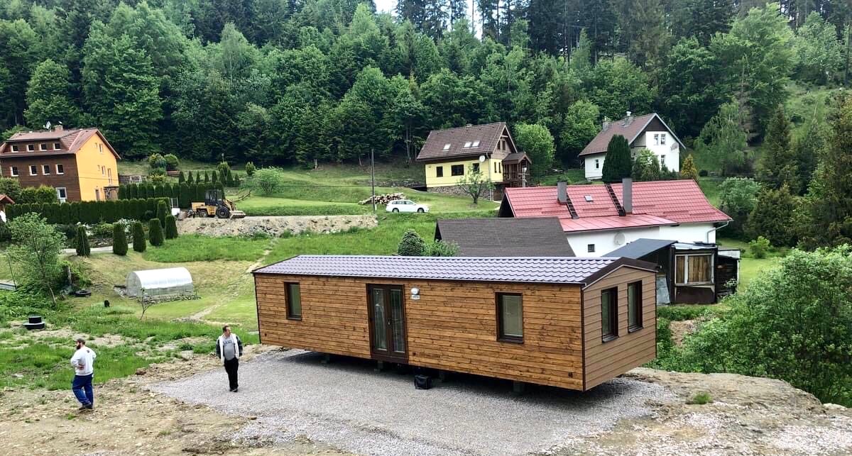 • Slovak mobile home with wooden cladding and an elegant look
