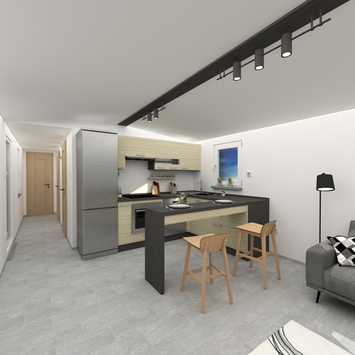 • Year-round livability – insulation adapted to our climate conditions, modern low-cost ceiling infrared heating and PVC five-chamber double-glazed windows for excellent thermal insulation