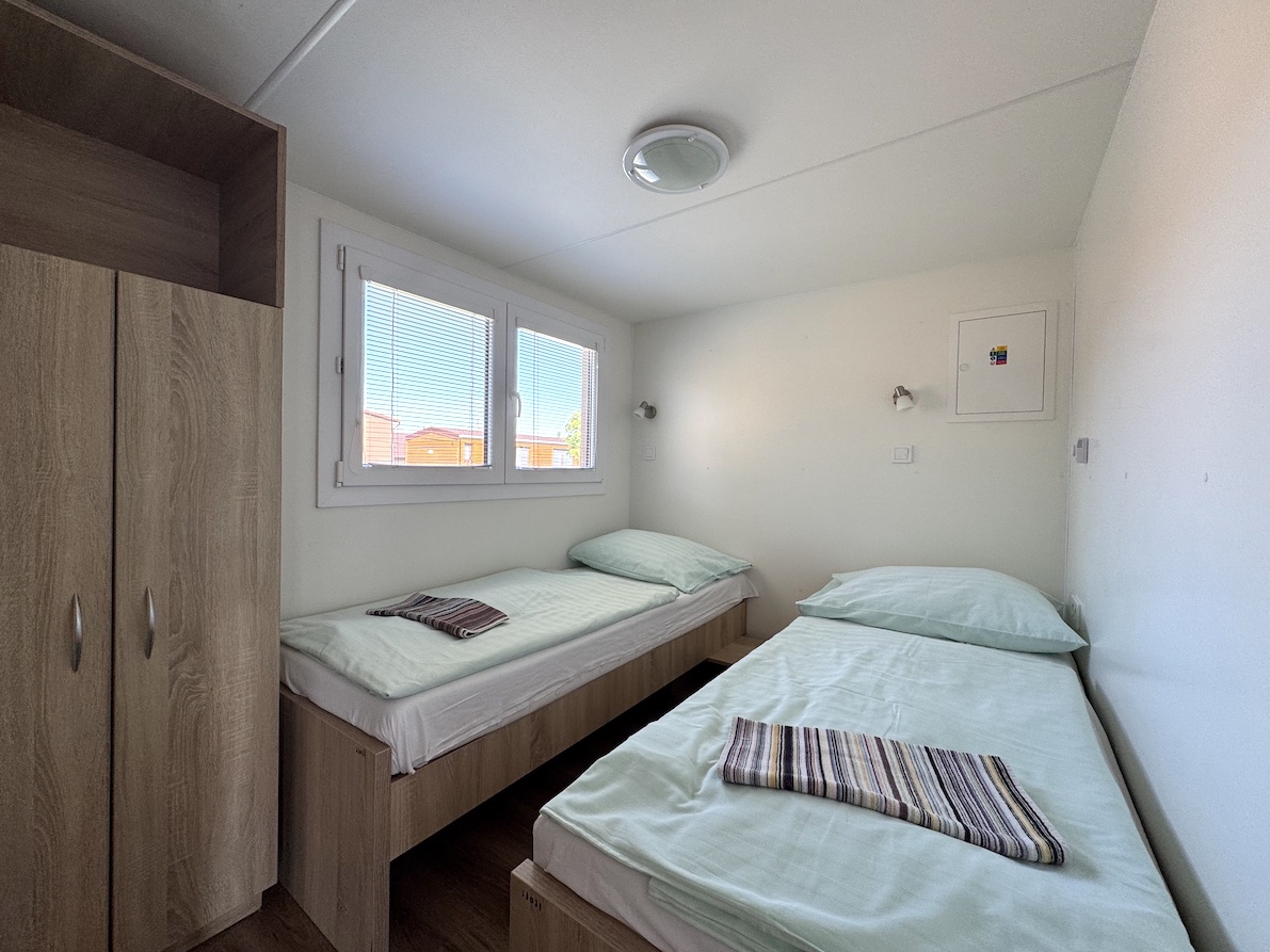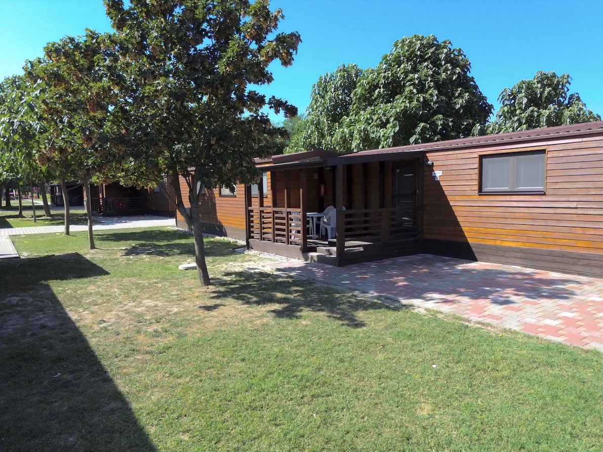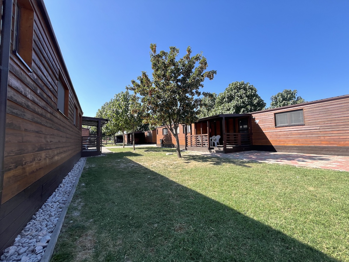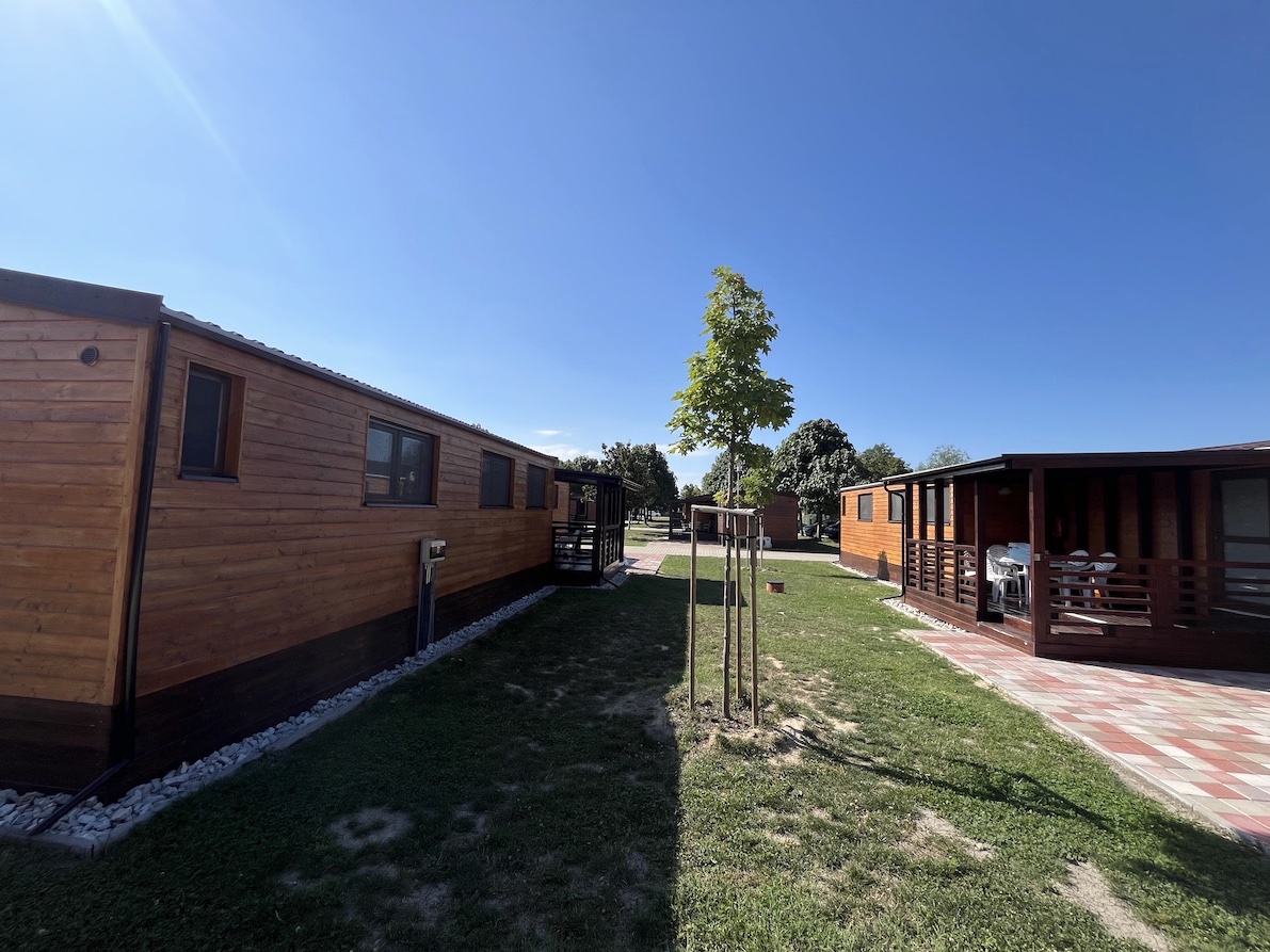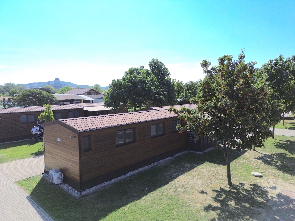 28 WOOD mobile homes with terraces, located in the center of the thermal resort.
